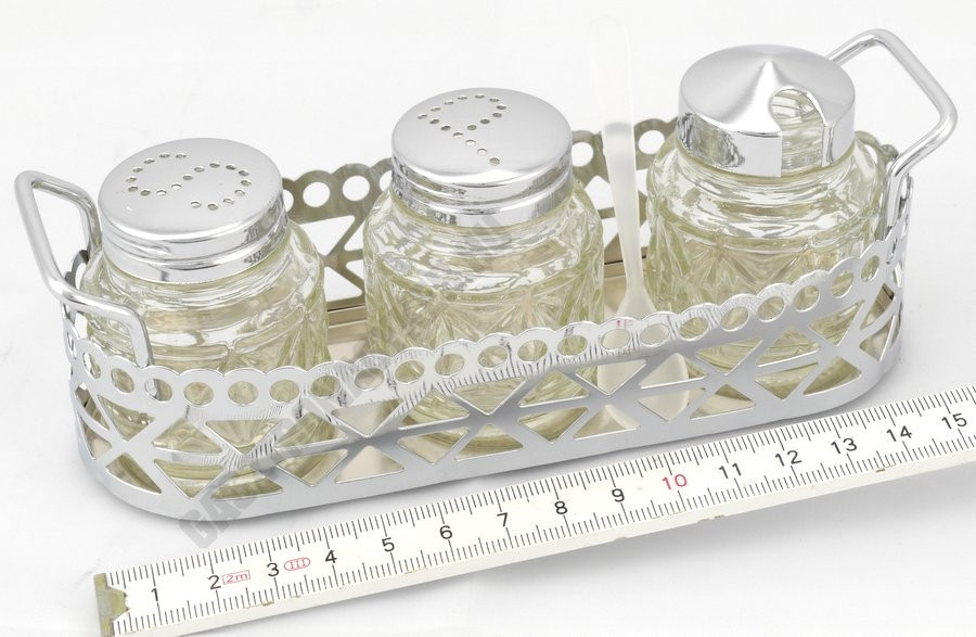Sokoldalú, 3 részes fűszertartó készlet praktikus tartóban, amely ideális megoldás a leggyakrabban használt fűszerek asztali tárolására. Teljes mérete 17x6,5 cm, így kompakt módon helyezhető el bármely étkezőasztalon.
