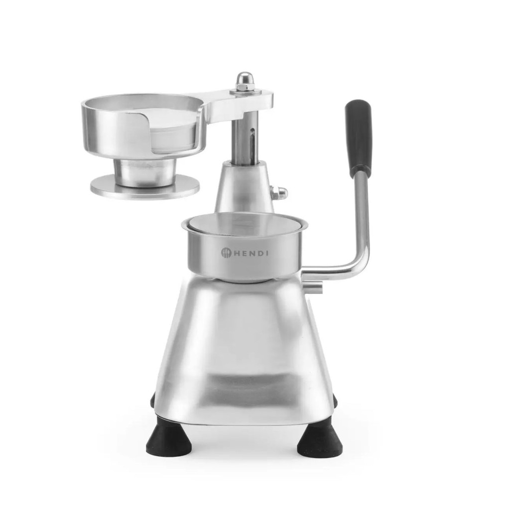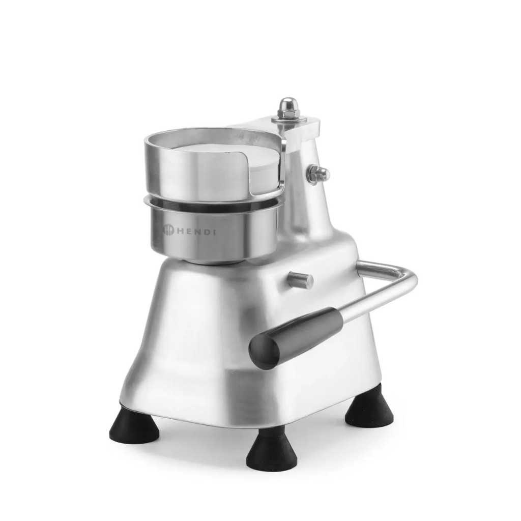 A HENDI hamburgerprés tartós, eloxált alumínium házzal és felső húzóbélyeggel rendelkezik, ami hosszan tartó teljesítményt biztosít. Formázás után automatikusan felemeli a hamburgert, felgyorsítva az előkészítést és csökkentve a kézi kezelést. Praktikus karja megkönnyíti a húspogácsa kiszabadítását a tálcáról, a mellékelt papírpogácsa-elválasztók pedig elősegítik a hatékony, higiénikus egymásra helyezést. A présgép leengedésére szolgáló egyszerű gombnak és a csúszásmentes lábaknak köszönhetően ez a présgép mindig egyenletes eredményt biztosít.