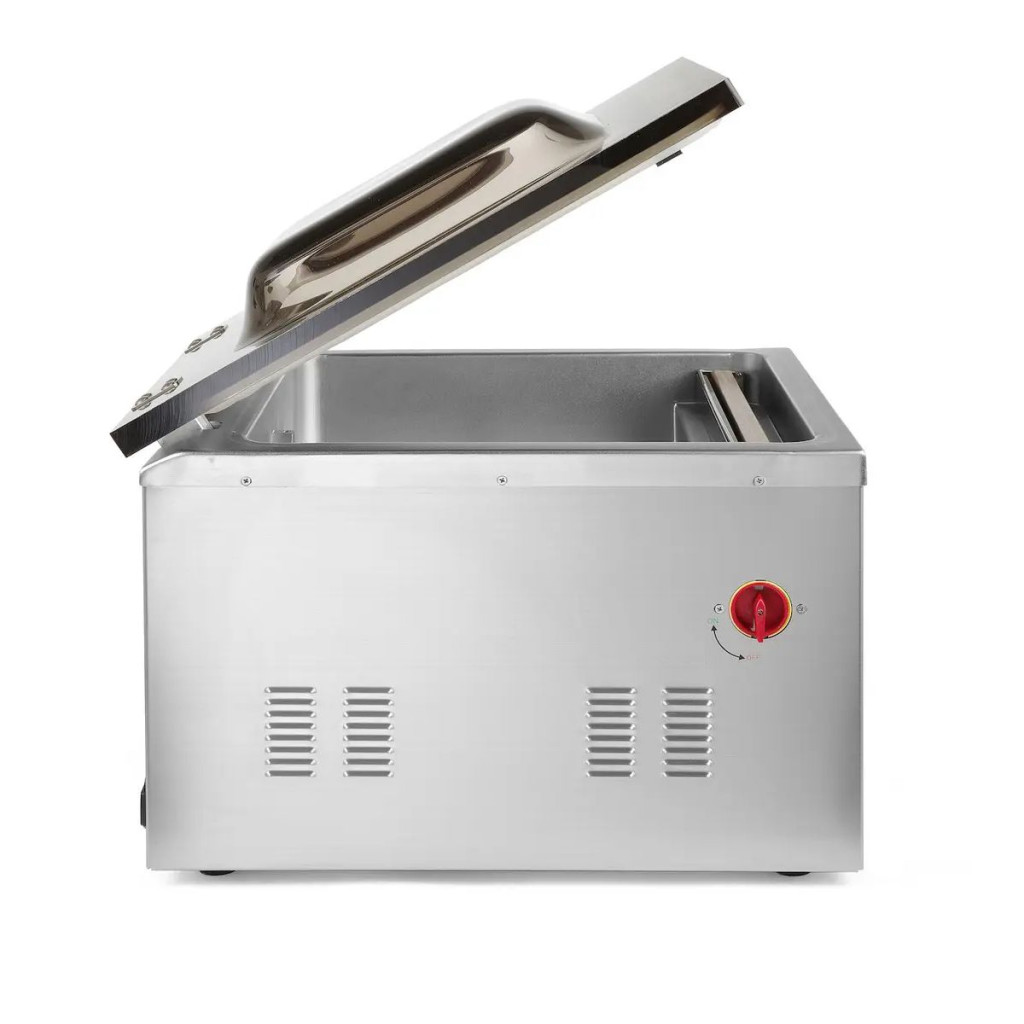 - A hatalmas kamraméret és kupolás átlátszó tető a nagy adagok csomagolását teszi lehetővé.