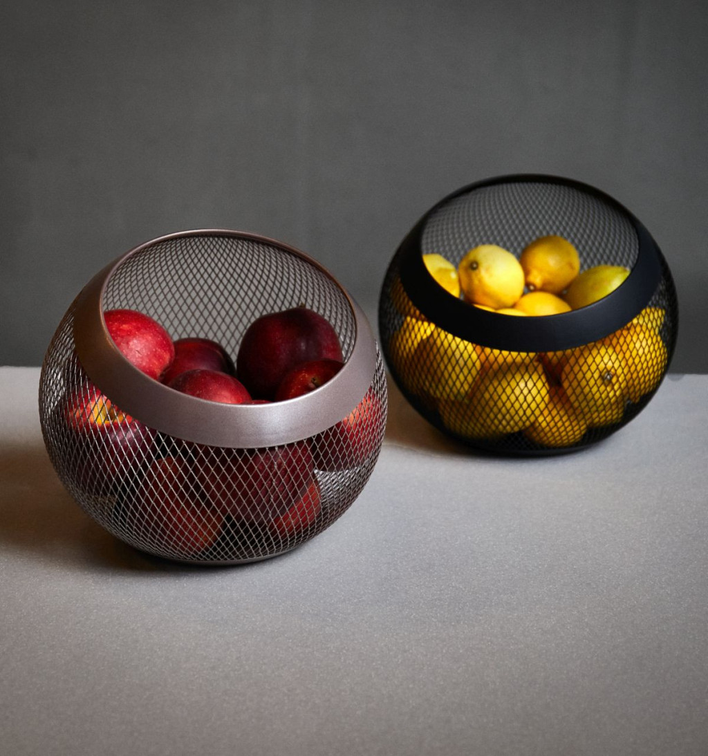 Fém gyümölcstartó kosár, 24 cm, porszórt fekete