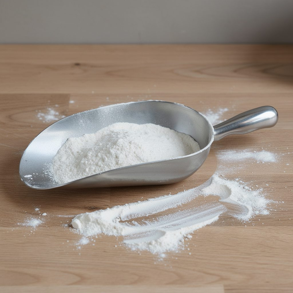 Pujadas márkájú, prémium minőségű alumínium lisztlapát 710 ml kapacitással.