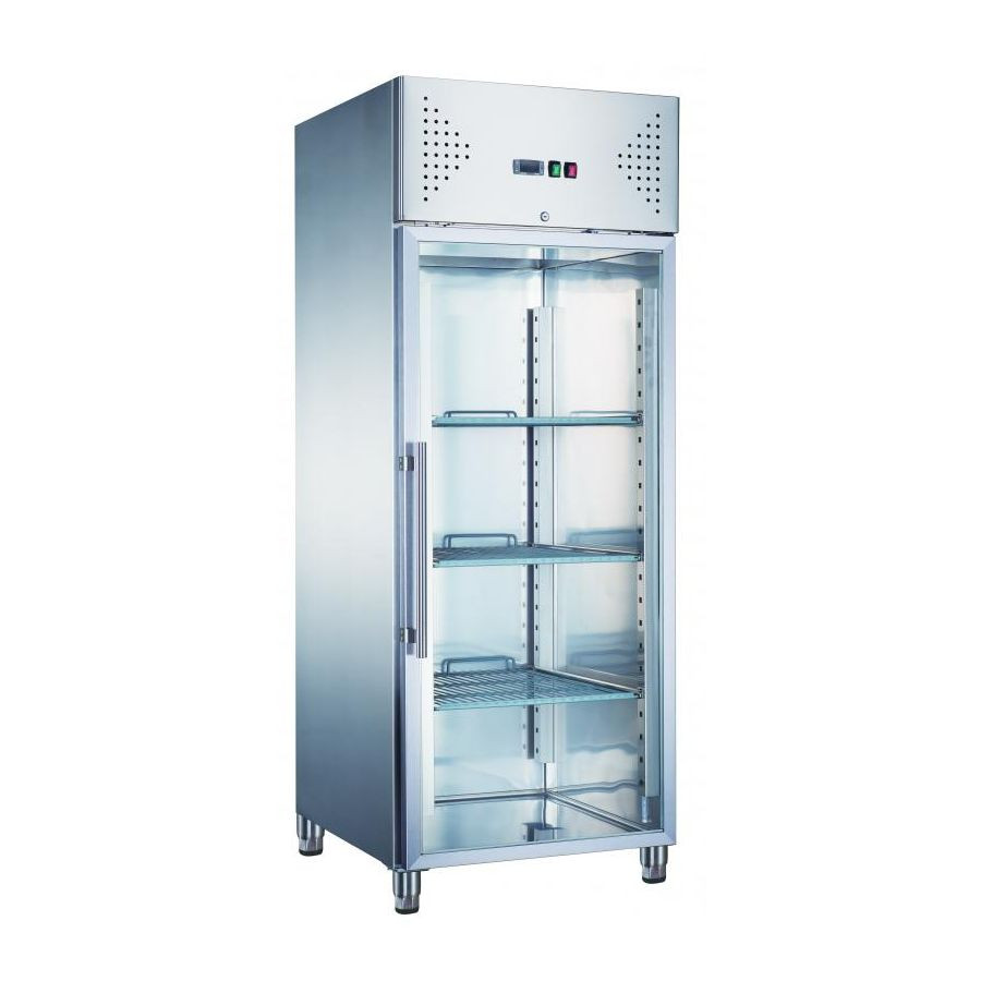 - Az üvegajtós hűtőszekrény 3 db GN 2/1 polccal, ventilációs hűtéssel, elektronikus hőmérséklet-szabályozással és digitális termosztáttal van felszerelve.