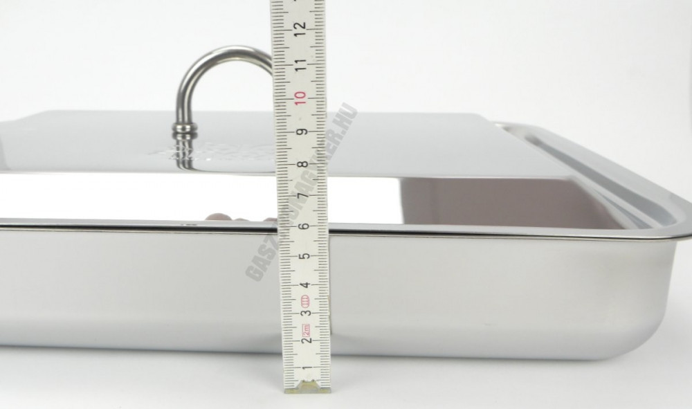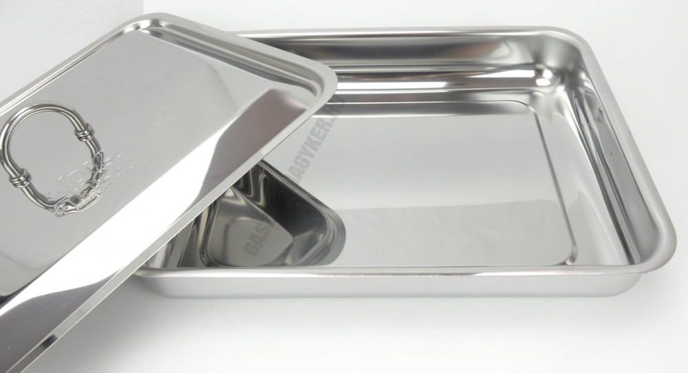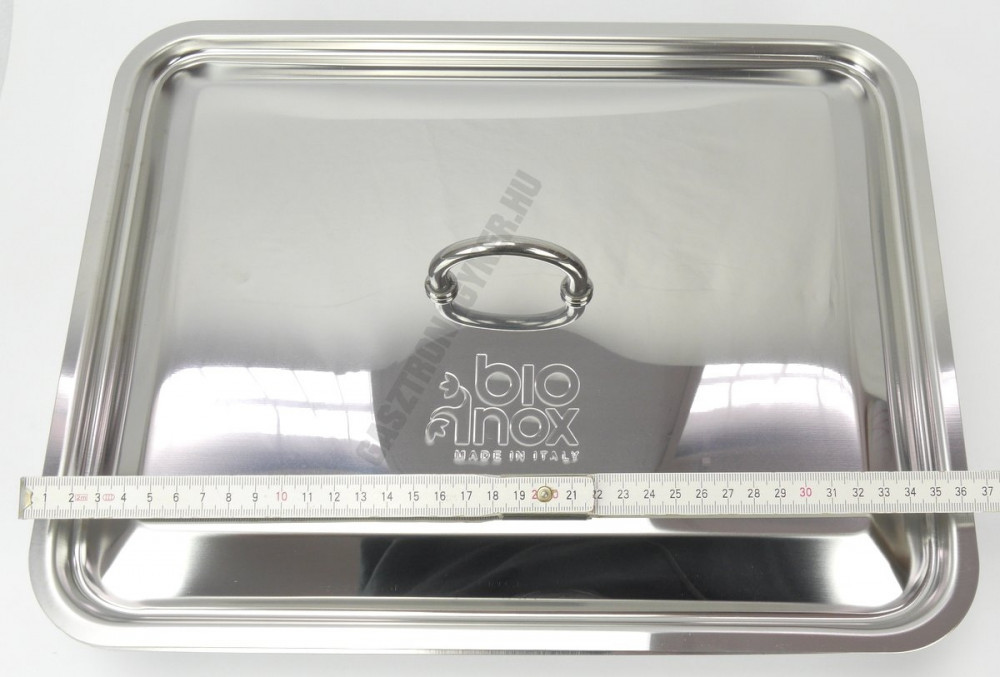 Sokoldalú rozsdamentes acél sütőtepsi fedővel, amely tökéletes választás mind otthoni, mind professzionális konyhákba. A 35 cm-es méret ideális családi adagok elkészítéséhez.