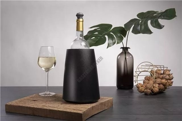 15 percen belül gyorsan lehűti a bort, és hűvösen tartja az utolsó kortyig. Ez a borhűtő újrafelhasználható hűtőelemet tartalmaz, amelyet a fagyasztóban tarthat, hogy hosszabb ideig élvezhesse a hideg bort. Az elegáns burkolat funkcionális és stílusos borhűtővé teszi.