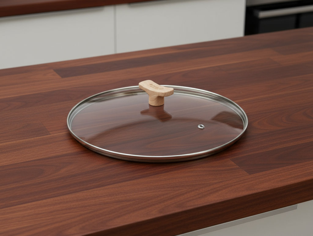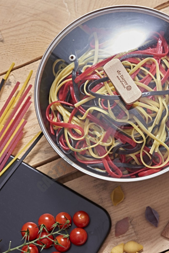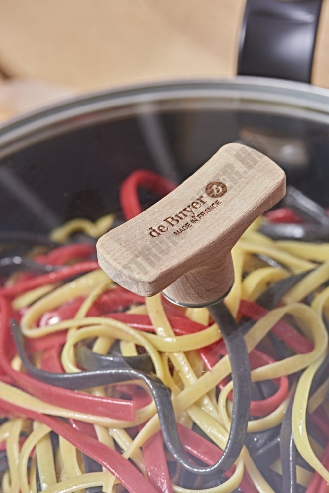A de Buyer Mineral B Bois üvegfedő 28 cm-es átmérővel rendelkezik, és bükkfa fogóval ellátva. A rozsdamentes acélkeret és a PEFC minősítésű bükkfa fogó könnyű és kényelmes kezelést tesz lehetővé. Ideális wok- és mélyserpenyőkhez, biztosítva a hő egyenletes eloszlását. Tökéletes választás minden konyhában, akár professzionális, akár otthoni használatra.