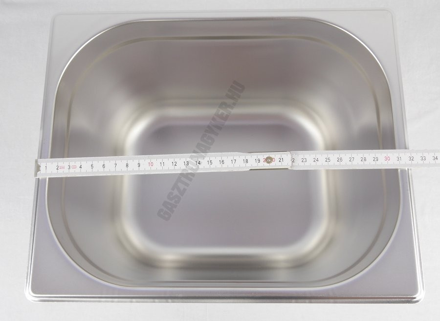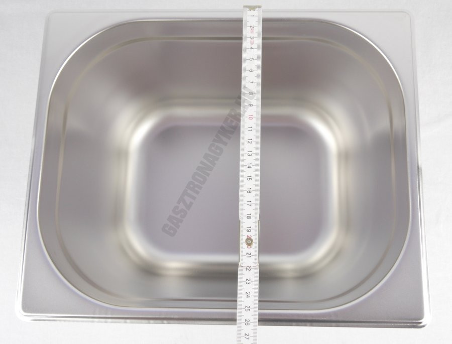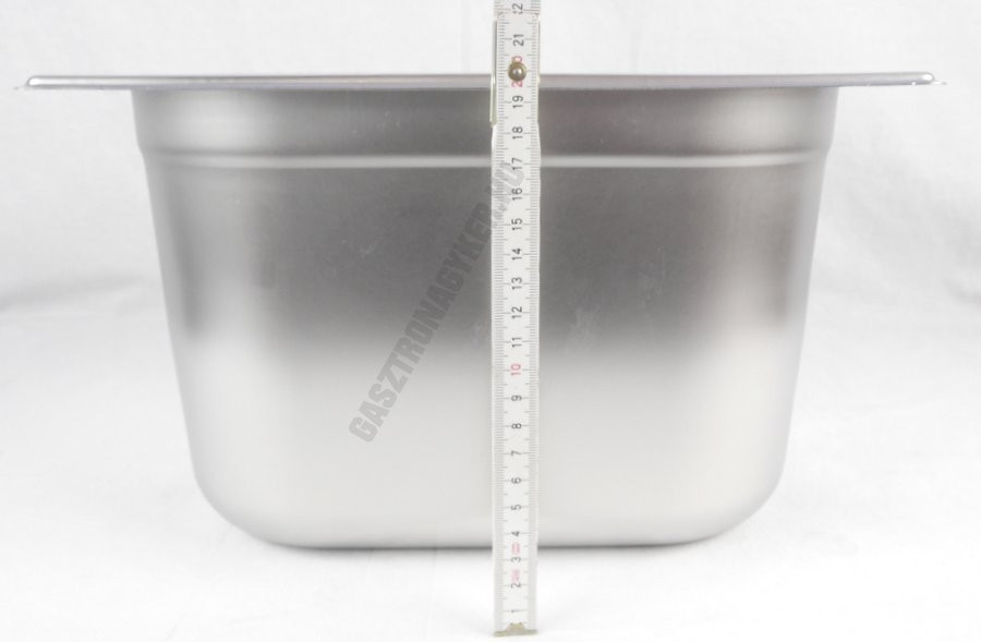 Professzionális GN 1/2 rozsdamentes acél edény, 200 mm mélységgel és 12,5 literes űrtartalommal.