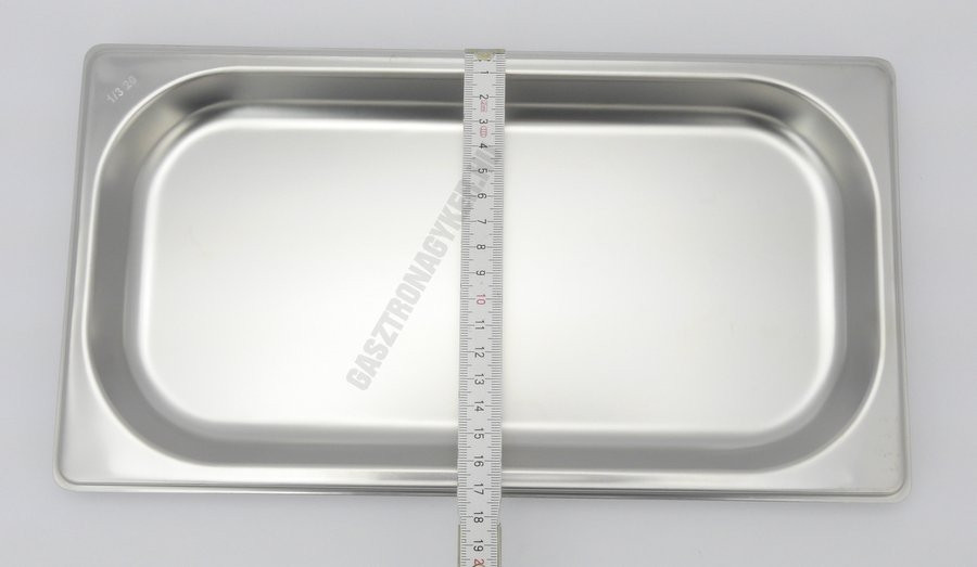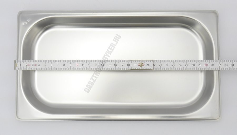 Professzionális GN 1/3 méretű rozsdamentes acél edény, 20 mm-es magassággal és 0,75 literes űrtartalommal.