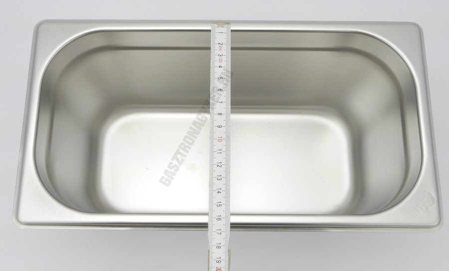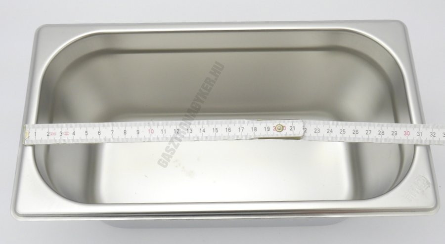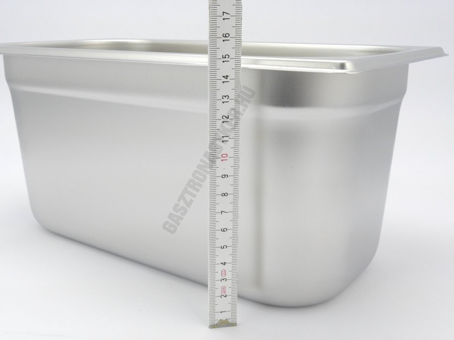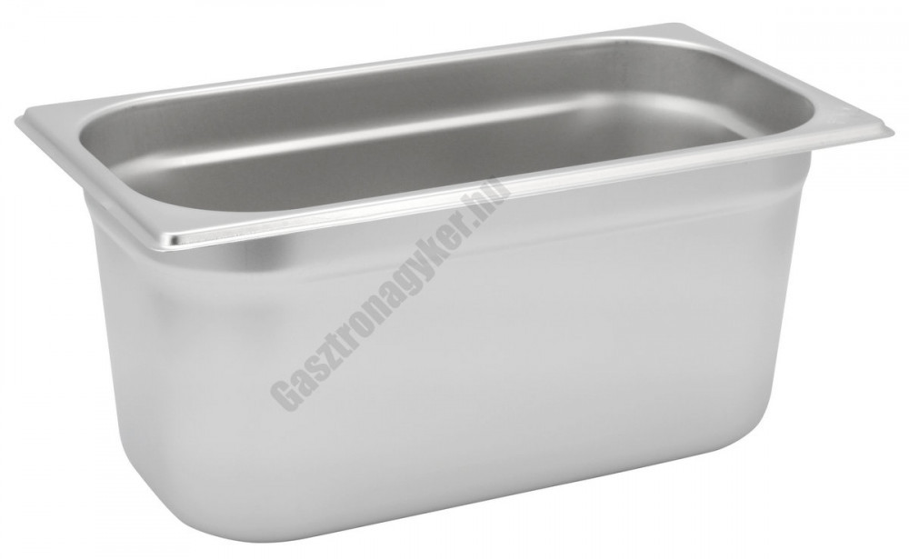 Professzionális GN 1/3 méretű rozsdamentes acél edény, 150 mm-es magassággal és 5,7 literes űrtartalommal.