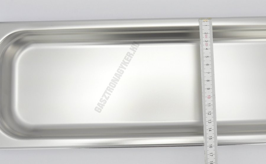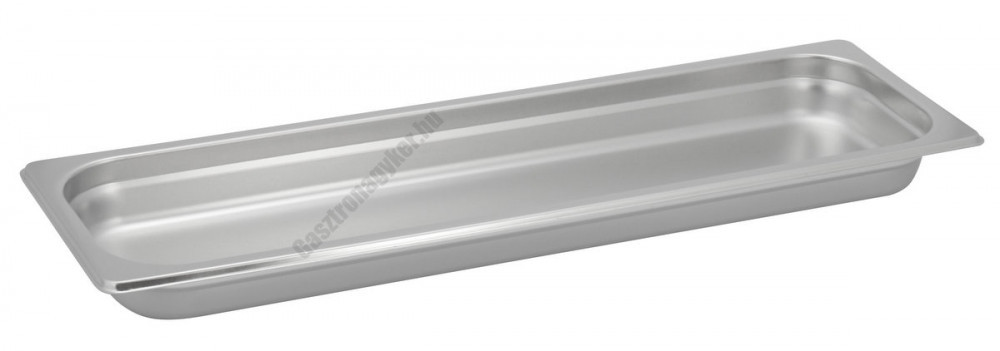 Professzionális GN 2/4 méretű rozsdamentes acél edény, 2 literes űrtartalommal és 40 mm-es magassággal. Mérete: 530x162x40 mm.