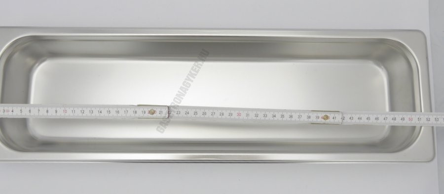 Professzionális GN 2/4 méretű rozsdamentes acél edény, megnövelt 3,5 literes űrtartalommal és 65 mm-es magassággal. Mérete: 530x162x65 mm.