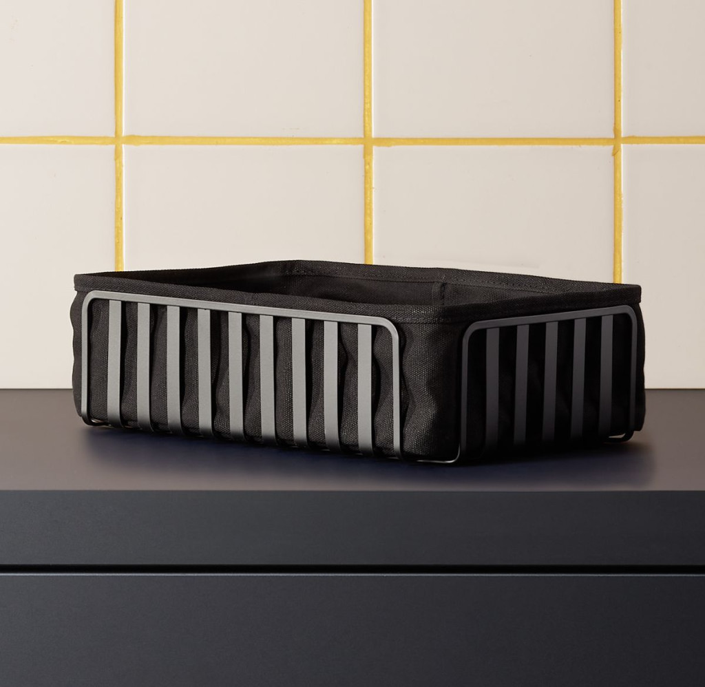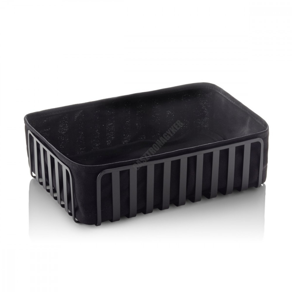 Kenyérkosár pamutbéléssel, fém, 28,5×18,5×8 cm, porszórt fekete