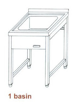 Nagykonyhai mosogató 1 medencés, 70x70x30 cm medenceméret, rozsdamentes
