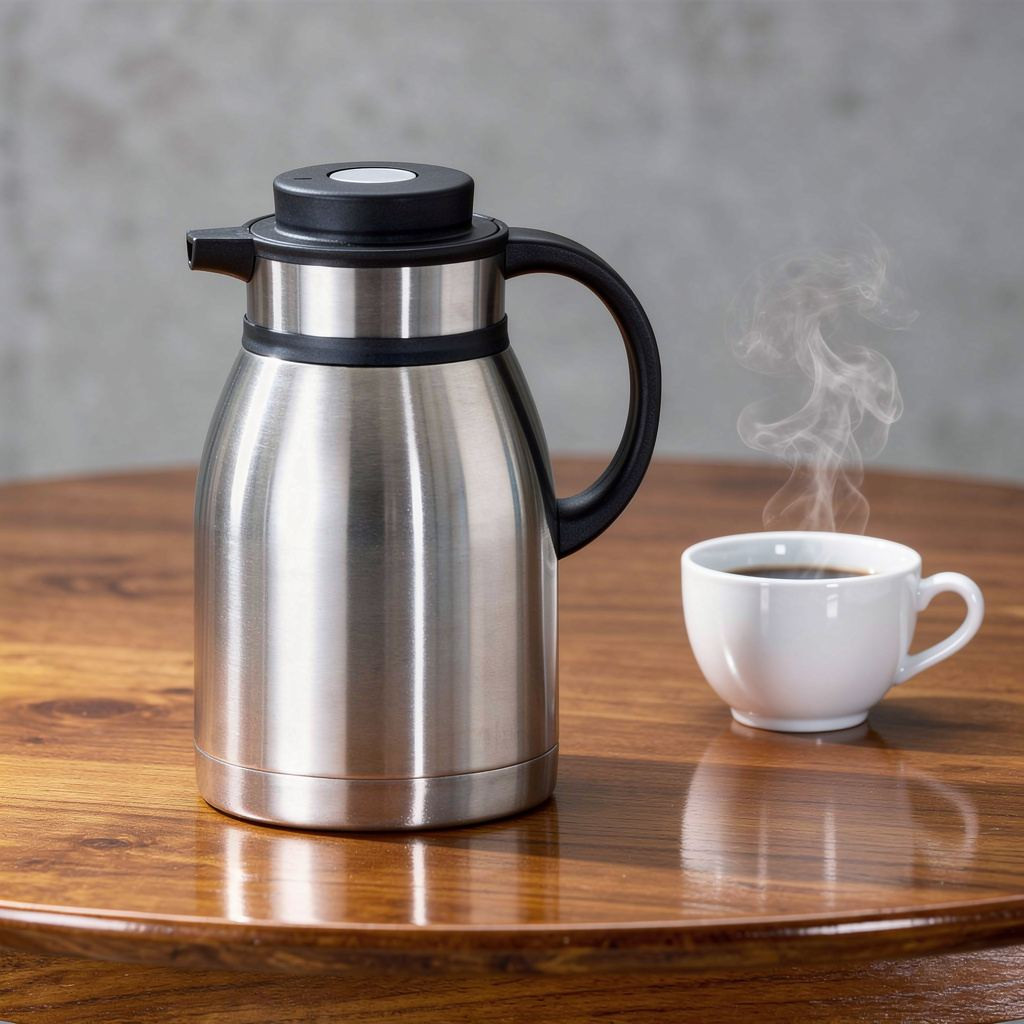 Termosz, nyomógombos, 2,5 liter, 29,5 cm magas, rozsdamentes