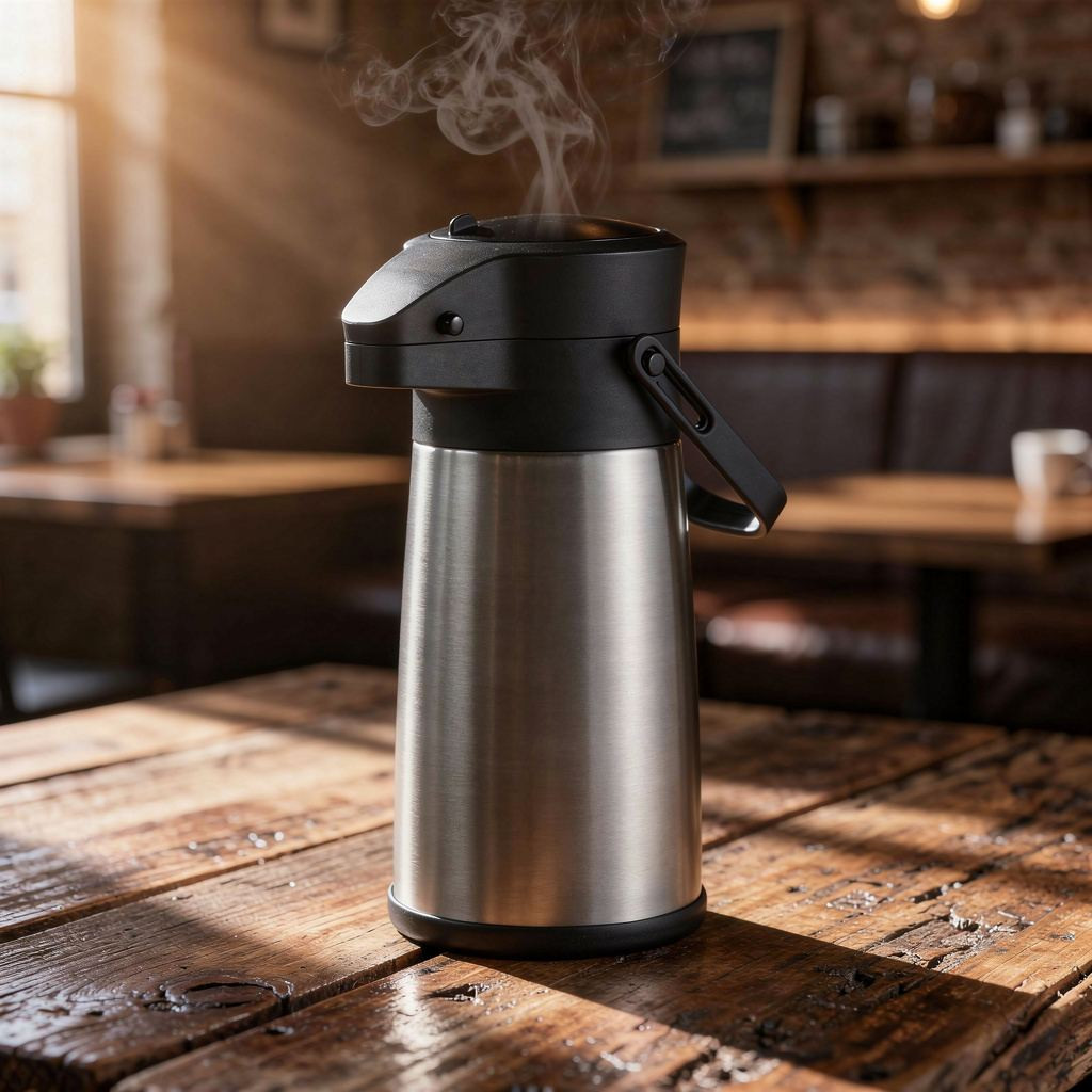 Termosz, pumpás, 2,2 liter, 34x15 cm magas, rozsdamentes