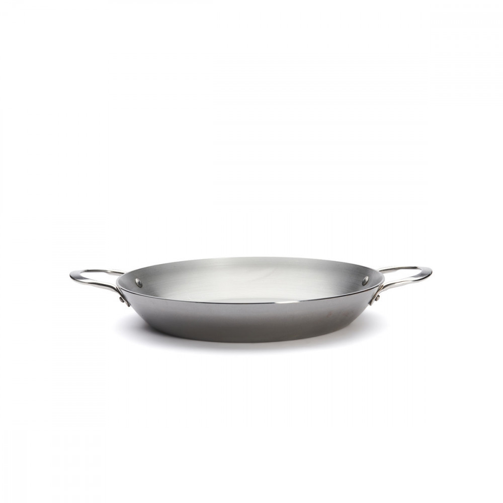 Az 1830-ban alapított francia de Buyer vállalat Mineral B termékcsaládjának paella vasserpenyője bármilyen hőforráson használható, indukciós főzőlapon mérsékelt teljesítménnyel, fokozottabb odafigyeléssel. Felhasználható főzőlapon, sütőben, vagy akár az étel felszolgására. 100%-ban természetes anyagokból készült. Nem deformálódik, masszív, karc és kopásálló. Szegecselt, rozsdamentes acél füle könnyű és ergonómikus kezelhetőséget tesz lehetővé.